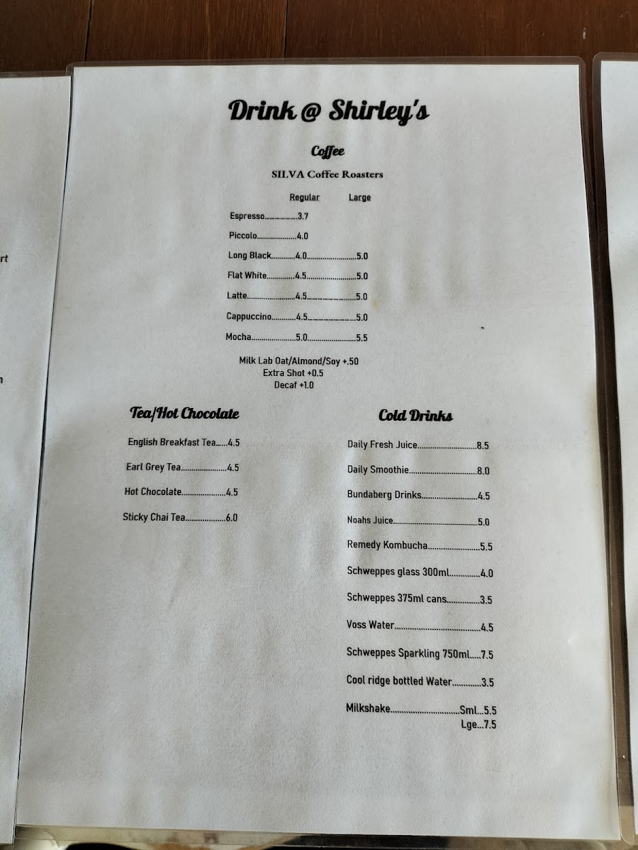 And let's not forget the drinks! Whether you're indulging in a glass of Unavale Vineyard Flinders Island Riesling or a crisp cocktail with Bombay Sapphire Gin, every sip is thoughtfully curated to elevate your dining experience. As customer Brad Miller passionately described, the coffee at Shirley's is nothing short of "absolutely amazing," reflecting the true talent of their skilled baristas.